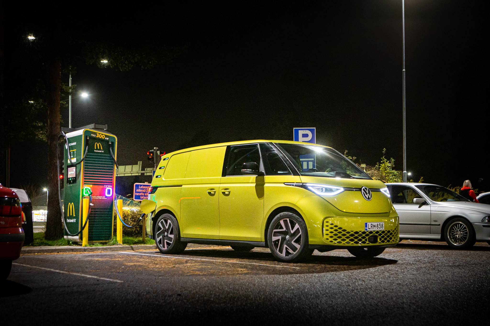 Viimeiset kilometrit ajettiin suunnilleen niin pimeässä kuin vain Itä-Suomen syksyisessä yössä on mahdollista. ID.Buzzin matriisiledivalot loistivat, aivan konkreettisesti, tällä etapilla, valaisten paitsi tietä myös sen penkkoja. Harvat vastaantulijat eivät kuitenkaan häikäistyneet älykkäästi muotoutuvan valaisukuvion ansiosta.